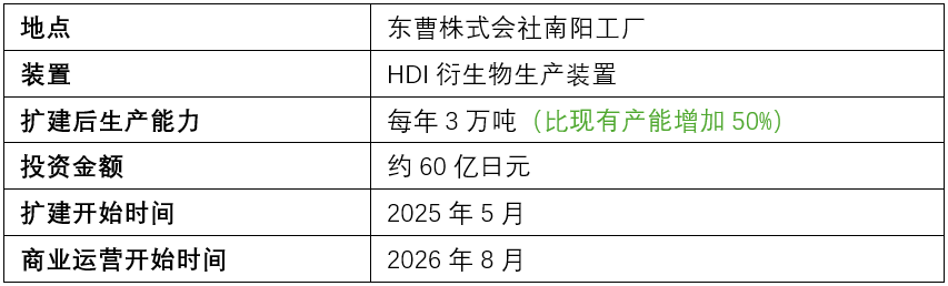 东曹株式会社(Tosoh)计划在日本山口县周南市的南阳工厂中增加六亚甲基二异氰酸酯(HDI)衍生物的生产能力。该公司以Coronate品牌销售其HDI衍生物。